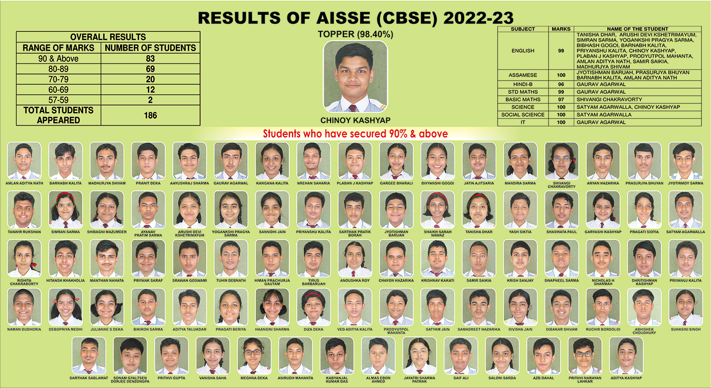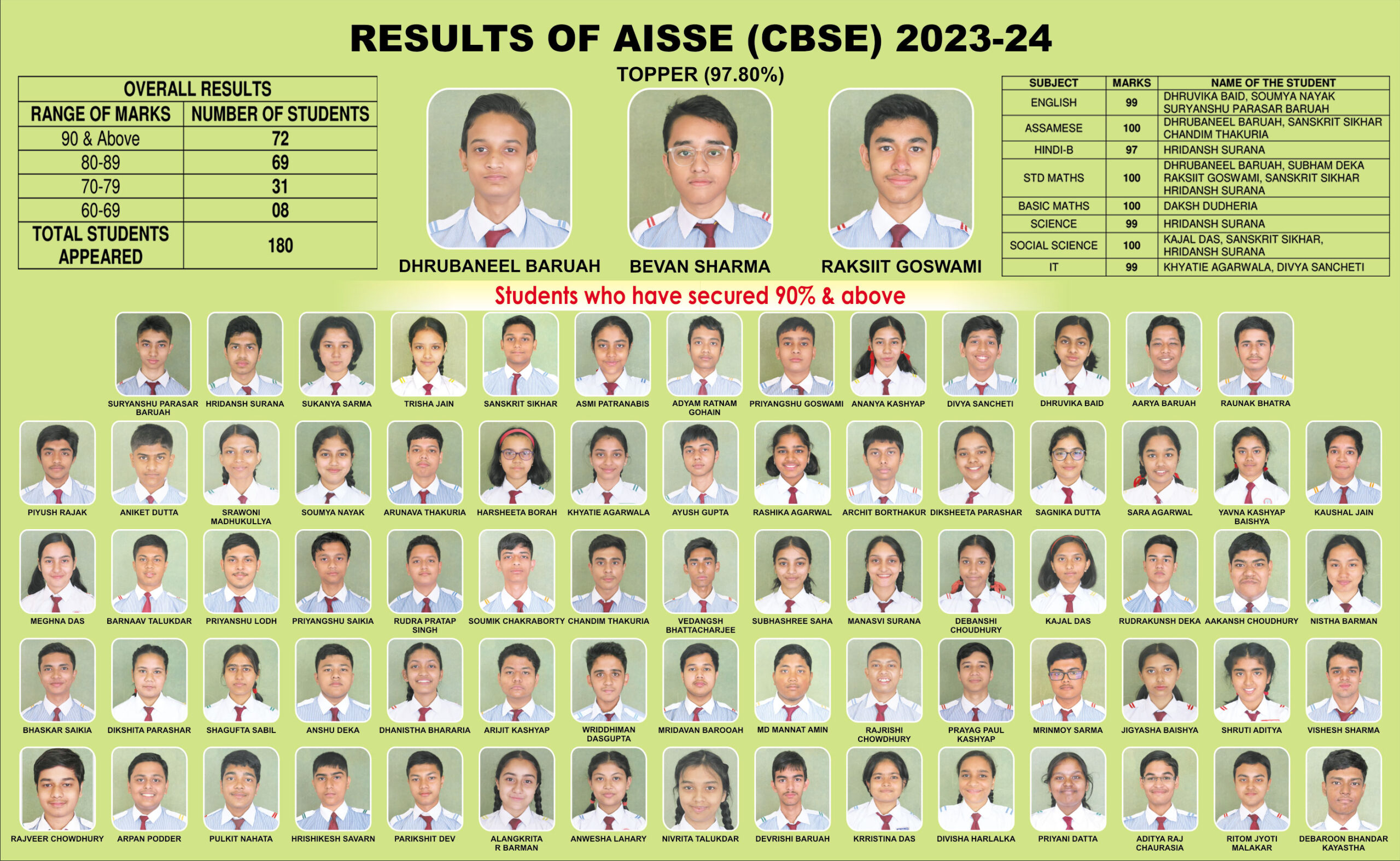 | Spriha Borah English 98 % |  | Shivanshi Das English98 % |  | Hrishop Dutta English98 % |  | Arihana Deka English98 % |  | Abhinav DJ Neog English98 % |